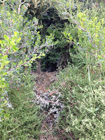 沿着泥土小道轻轻前行,两旁是绿绿葱葱的矮小灌木,呀!里头藏着你们呢。然后经验便有了,你们喜欢待在灌木里休息,圆圆洞口是你们的窝,我们对你们好奇,你们也对我们诧异,你们摇头晃脑,大摇大摆的走着,歪着脖子看着我们,萌的心要化了。栈道有门,别忘了关门,不然小萌物们可得像马达加斯加里的企鹅般称霸街道啦!