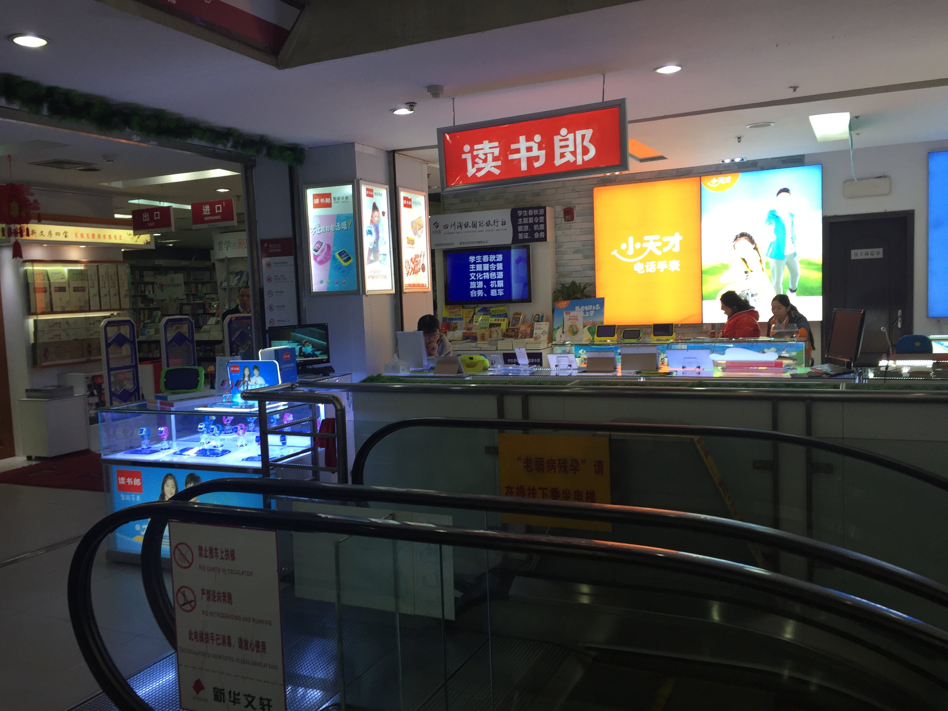 二楼还有一些电子产品和音像制品,这次就是因为听人说这里有kindle,所以跑来看看的。不过价格确实比网上买要贵。还发现了有寄放处,不过柜子很少。现在文轩也不是正价卖书啦,满100元还送50购书券,实体书店确实经营困难啊。