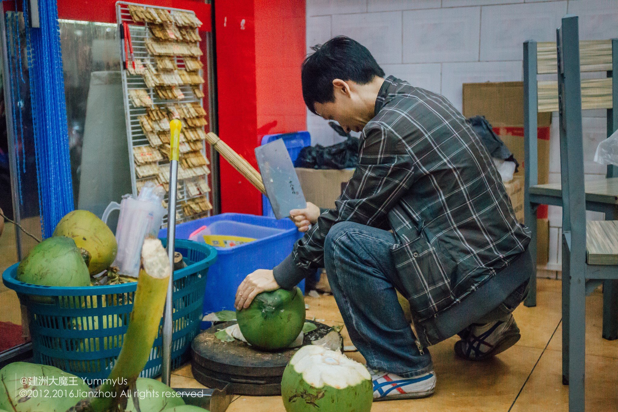 老板是个非常和蔼可亲的湖南人,难怪他家的辣炒这么正宗。后来别桌的客人要椰子,我们才发现原来他家还有椰子卖,赶紧买一个大椰子给妈妈们尝一尝。