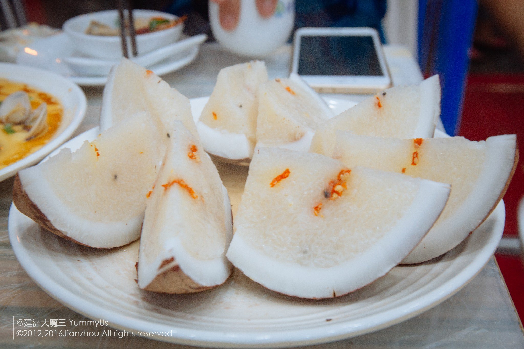 海南独有的椰子饭,把糯米、椰肉和椰汁一同蒸熟,味道嘛,可以理解成椰子味的粽子。