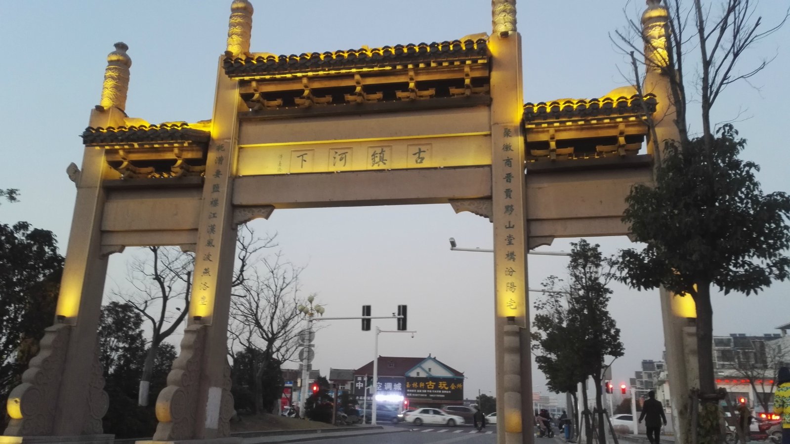 之前了解到这是苏北保存最原始的古镇之一,到那里的时候已经傍晚了,古镇牌坊字样和两侧对联依旧呈现出古朴风格,而且可以驱车进入,只是越往里开建筑越现代化。比较有趣的是,沿河的几座桥,宽度也是车辆可以驶过的(很多古镇就算车可以开进去,镇里的小桥也是没法行车的)。