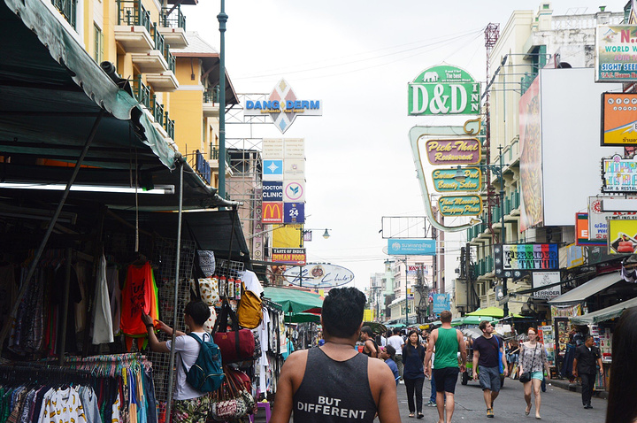 最后还是到这个全世界闻名的背包客集中地打卡。我隐隐记得Running man来泰国的时候是来过这里的。 真实的看这个地方的时候,才发现根本没有节目里那么繁华。即使是在晚上,也就像是中国普普通通的一条酒吧街一般。怕是比不上nana吧。这是后话。 路上总有向你搭话的泰国人。他们用蹩脚的中文、英文、韩文、日文跟你打招呼。当你终于忍不住噗嗤一笑说了你好的时候。他就会这样回答你。”你好!“”你很漂亮!“”我爱你!“ 我突然想起super rich的店员。 啊。 原来是这样啊。 这里的人,都会说”你好“,”你很漂亮“和”我爱你“。