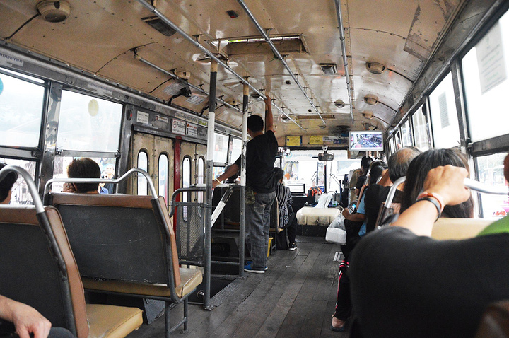 在考山路这边就没有BTS和Mrt了。在google的建议下,我们选择坐了一次,也是在泰国唯一一次公交车。 khao san - siam 并没有发现公交站牌,在google的指引下还是坐上了车。早就听闻在泰国有些公交车是不花钱的,没想到就幸运的坐上了一趟。我感觉如果你的时间来得及,坐公交车或许是比BTS什么的更好的选择。因为真的便宜哦!没准还免费哦!可是公交车是不报站的,这时候就只能感谢google地图强大的定位,靠着一路定位,我们安然无恙的在asok的附近下了车。