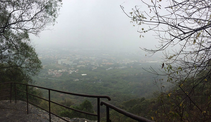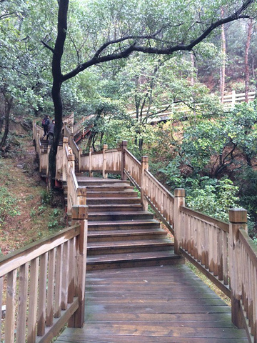 雨中的栈道。总之这座山有一座最高的山峰,我们没有登上去,因为实在是太高。的确有种“清源”的画面感