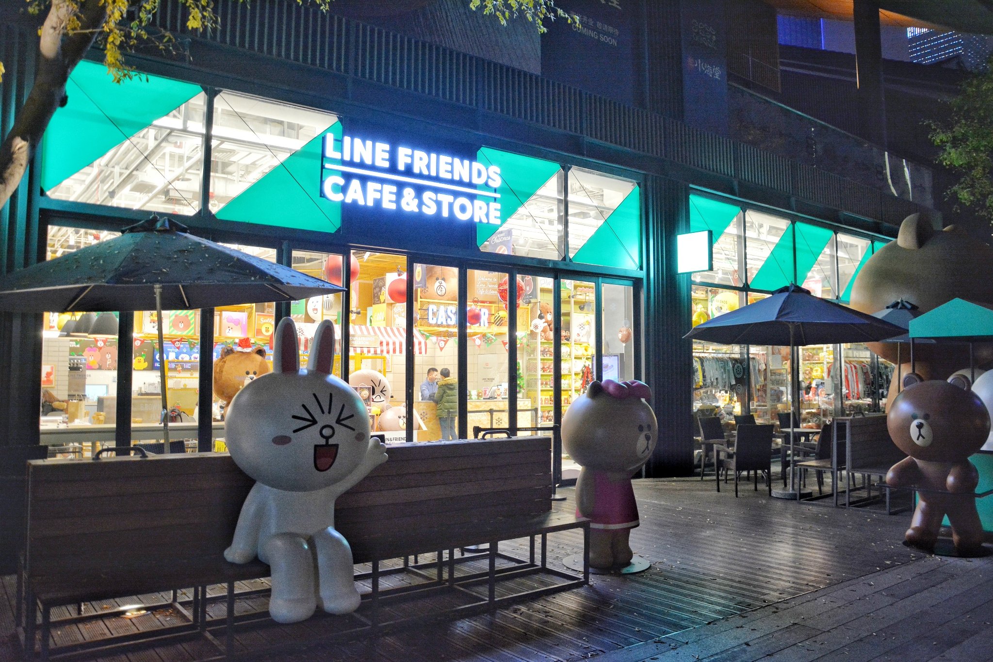 Line Cafe可以说是女生来到太古里必拍照的地标了,里面除了咖啡和小吃外,还有不少的Line周边产品,吸引了不少女生疯狂买买买,不过同样的产品印上了Line都会变得价格偏贵,所以看个人咯,觉得喜欢买一些当纪念品也是不错哦~