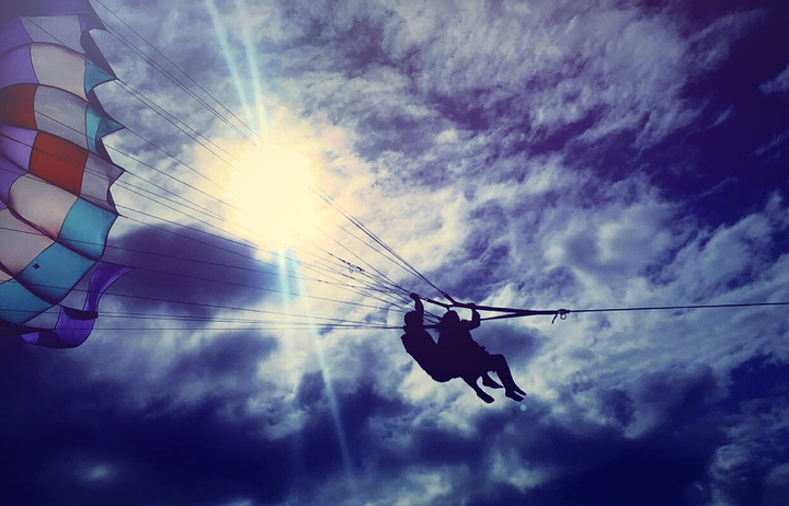 水上三项包括水上沙发+滑翔伞+海底漫步。刺激也值得,尤其是滑翔伞,没上去的时候我担心上不去。。上去了以后又担心下不来。。上天的感觉真是。。很自由,很畅快~~ 这次浮潜我就有经验了,天气也好,景色嘛,的确没有蓝湾美,因为浮潜区域是限定好的一个范围,安全却少了徜徉的乐趣。但人不能太作,这样的浮潜适合我这种经不起大风大浪的哈哈哈。鱼依然很多,还有很美的珊瑚,还有人号称看到了海蛇。。。我怎么觉得是烂绳子呢。。总之这次浮潜非常愉快~~浮出了自信,浮出了风采!!!