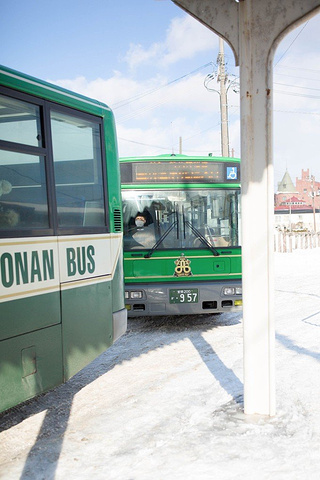 在登别站内此窗口处买好由车站前往“登别温泉街”的往返巴士车票。 买单程340日元,往返620日元