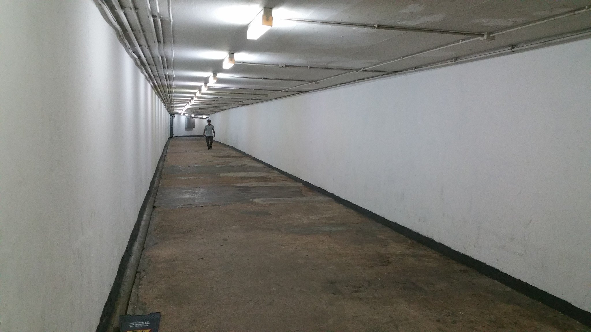 沿最左边墙跟脚,走下停车场 —— 路上注意安全。
