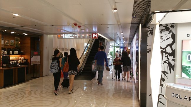 这里就是铜锣湾世贸中心,看到下图居中偏左的自动扶梯了没?—— 没错,到这里后,上自动扶梯,进入世贸中心里面。