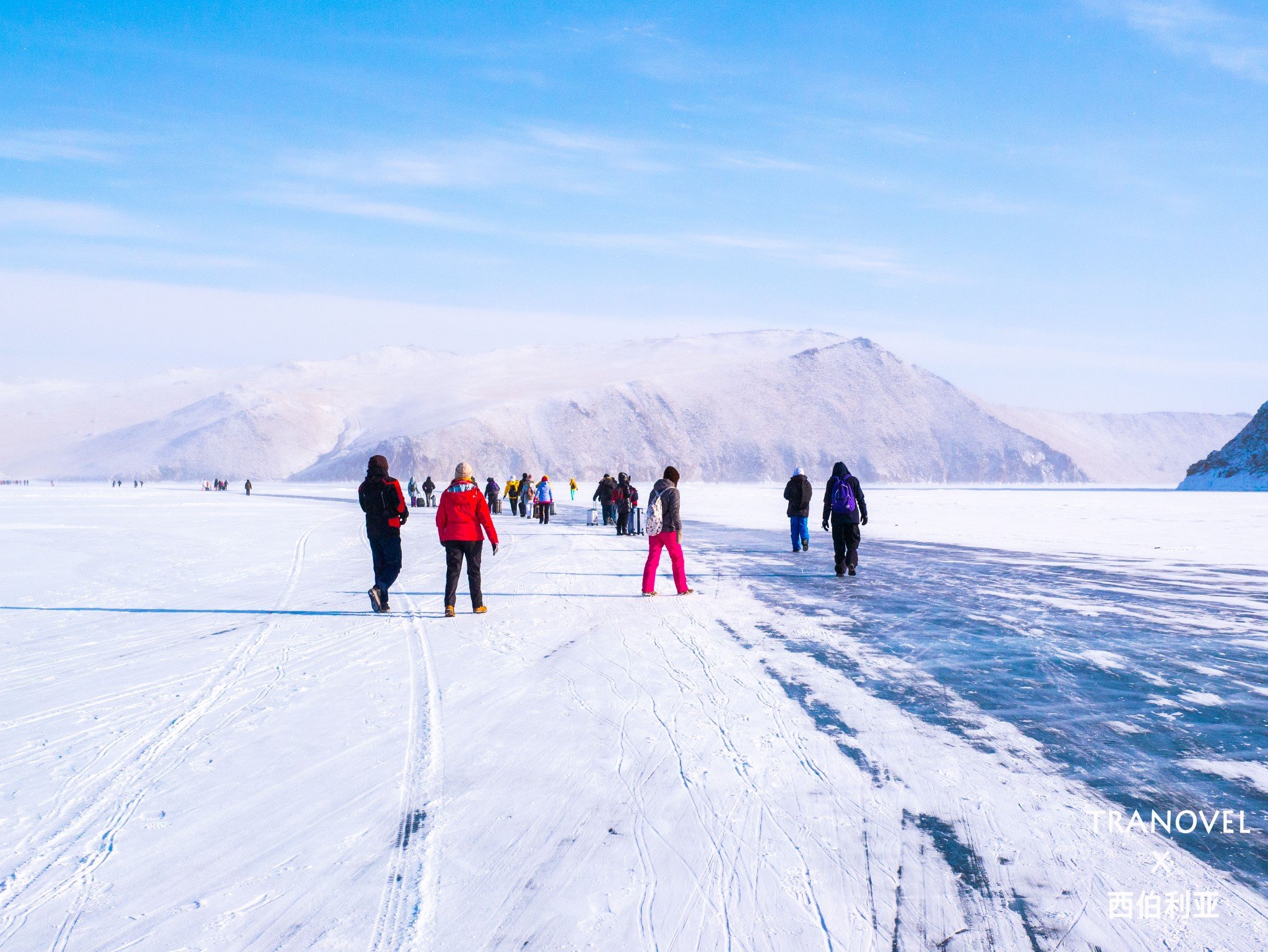 冬天的小巴车不会开到湖上,要么每人交350卢布坐气垫船,要么步行,我们选择了步行,感觉选择步行的人比坐船的多~