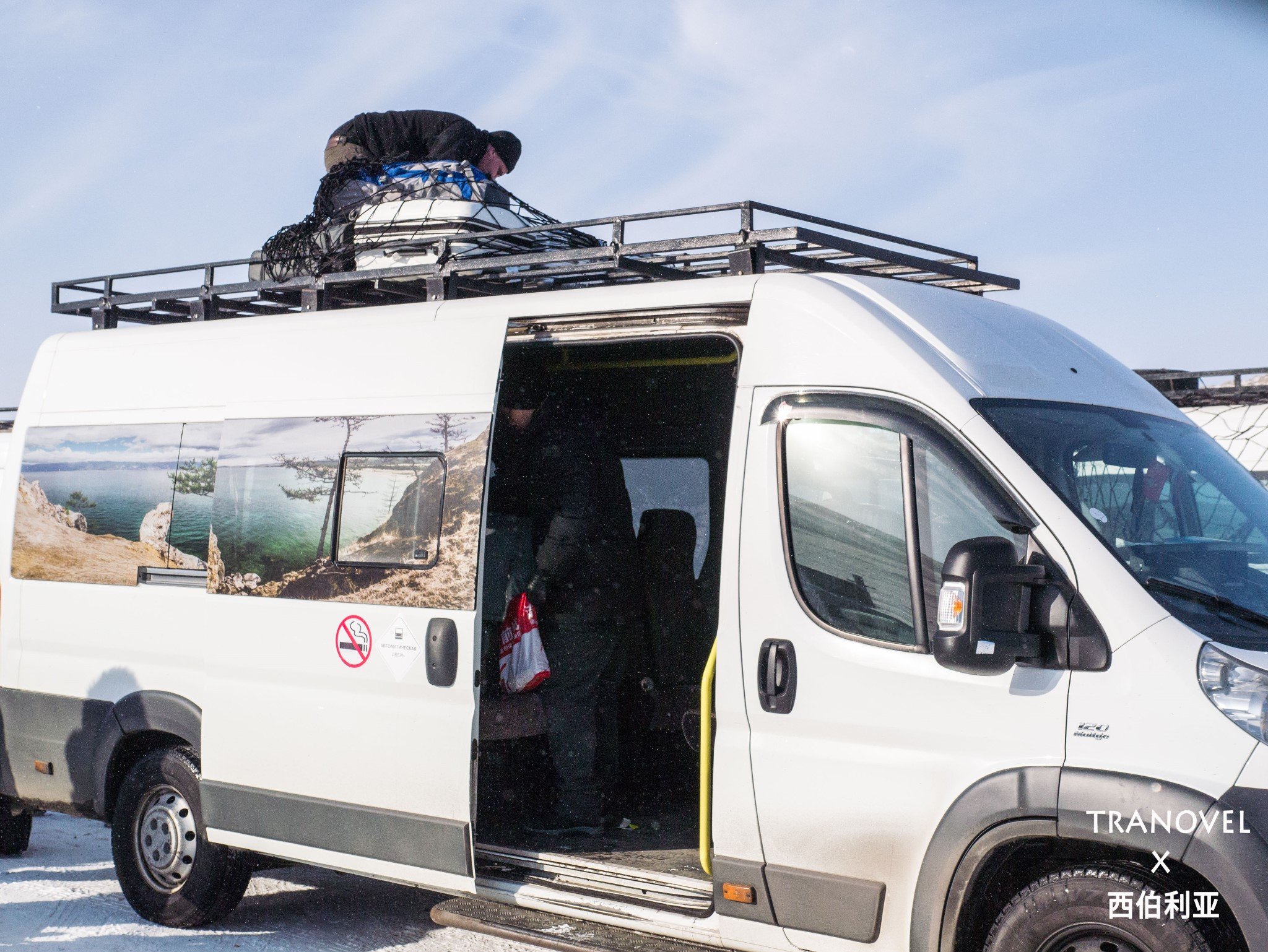 小巴车大概会坐3个多小时,中途会在一家饭店停下让大家吃饭上厕所。小巴车负责把人送到贝加尔湖边,可以步行过湖到对岸转小巴车(联程,不额外收费)也可以选择坐气垫船过湖,350卢布/人,步行过去大概走20分钟左右,我们来回都选择的步行,因为美。湖上还会见到滑冰的青年,有意思。转到湖对面的小巴车后还要再坐1个小时左右,总之全程大概需要6小时,我们到宾馆的时候已经是下午4点了。