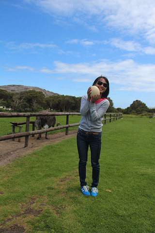 Cape point ostrich farm在路边有一个标志牌,进去以后很是明媚开阔。想骑鸵鸟的,但黑人果果说骑鸵鸟对鸵鸟的颈椎不好,要保护它们,所以作罢,事实证明不骑也是对的,电视真人秀上一顿摔地啊。这个农庄提供:参观鸵鸟的成长环境,工作人员讲解鸵鸟的知识,人均55兰特。还可以买吃的喂鸵鸟,一袋10兰特。当然,还可以踩在鸵鸟蛋上,真的不会碎。还少不了购物环节,都与鸵鸟有关,鸵鸟皮做成的包包,我们自然是不买的,巨贵又不好看;鸵鸟蛋做成的各式工艺品摆件,推荐大家买,很精致也很漂亮。但是回国的路上,不好托运,我们四个人共计九个蛋,到了杭州萧山机场,出关时差点没收,蜀黍说下次你们再带回来就没收了,太感谢了,不然得在机场哭了。