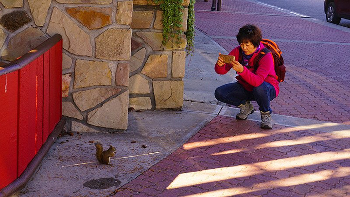 酒店里到处找松子的松鼠,好像正准备过马路。