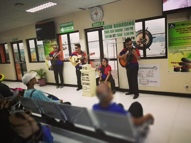 这是薄荷岛候船大厅的盲人乐队。