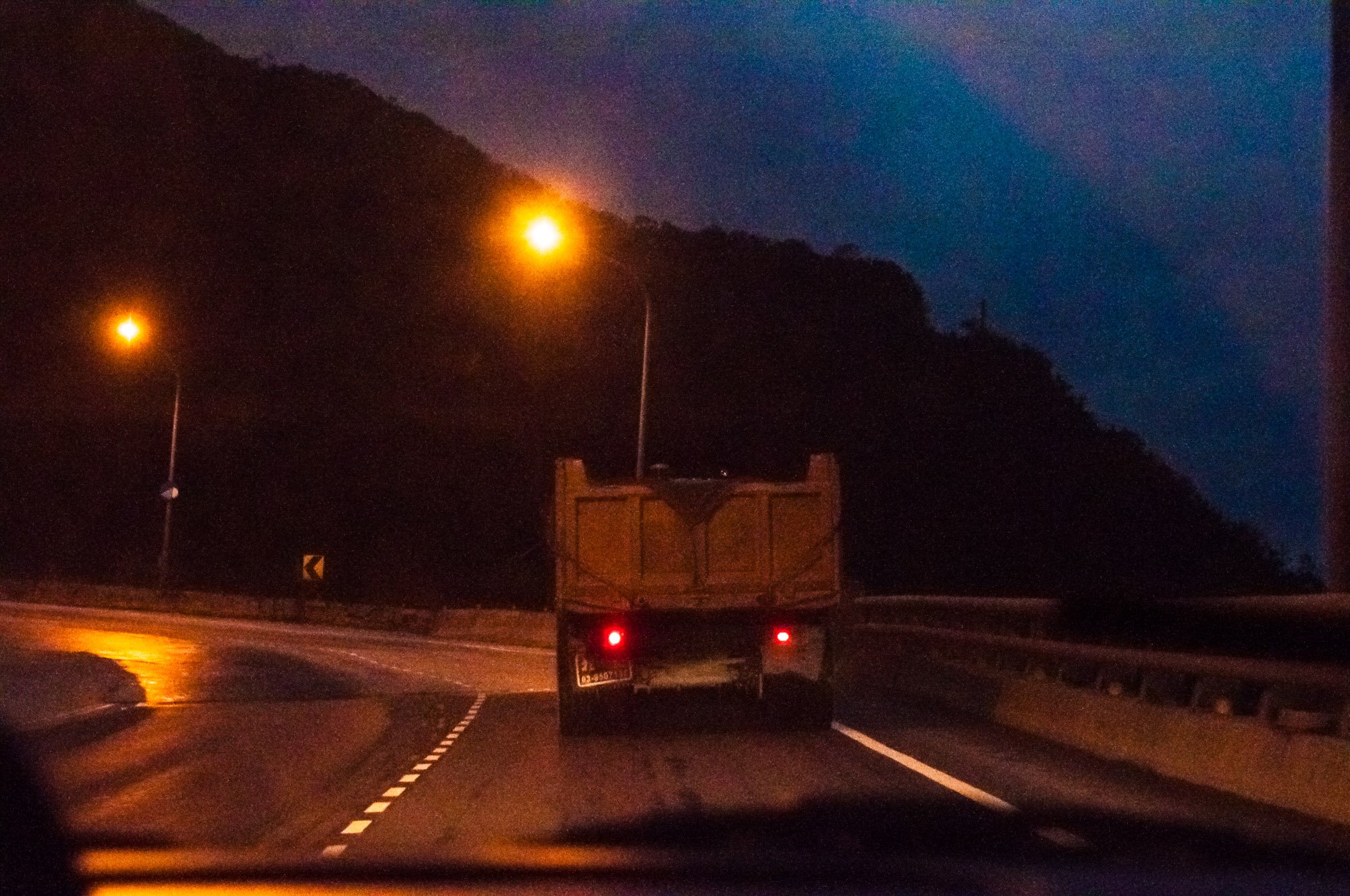 晚上六点,天已经基本全黑了,山路更加危险。每当后面车辆堆积以后我便靠休息区让过他们,跟车要轻松很多。