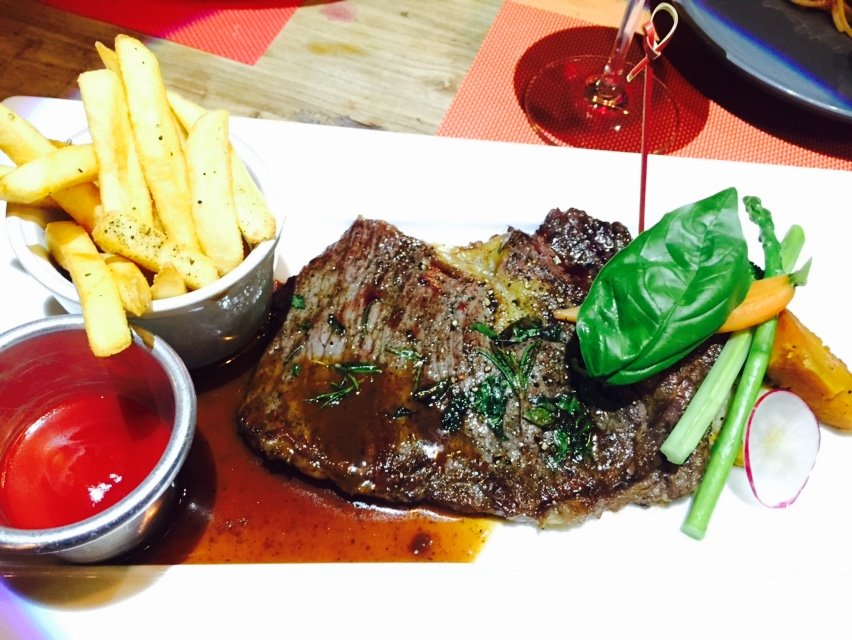 牛排是最美味的西餐,烤制的五分熟,火候正好,选的食材也比较好,肥瘦都有的,黑椒汁搭配的酱料,配以薯条,炸的刚出炉正好酥脆,番茄酱也好吃。