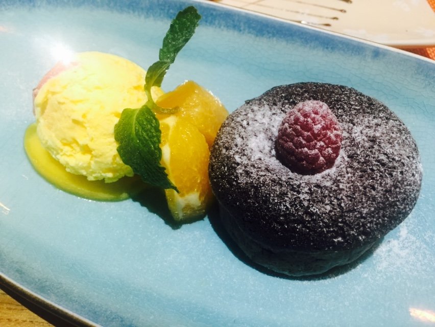 巧克力蛋糕是我最喜欢的,浓浓的可可,夹心巧克力,都让这顿晚餐充满了甜的滋味。配以香草柠檬,酸酸甜甜,完美的画上句号。