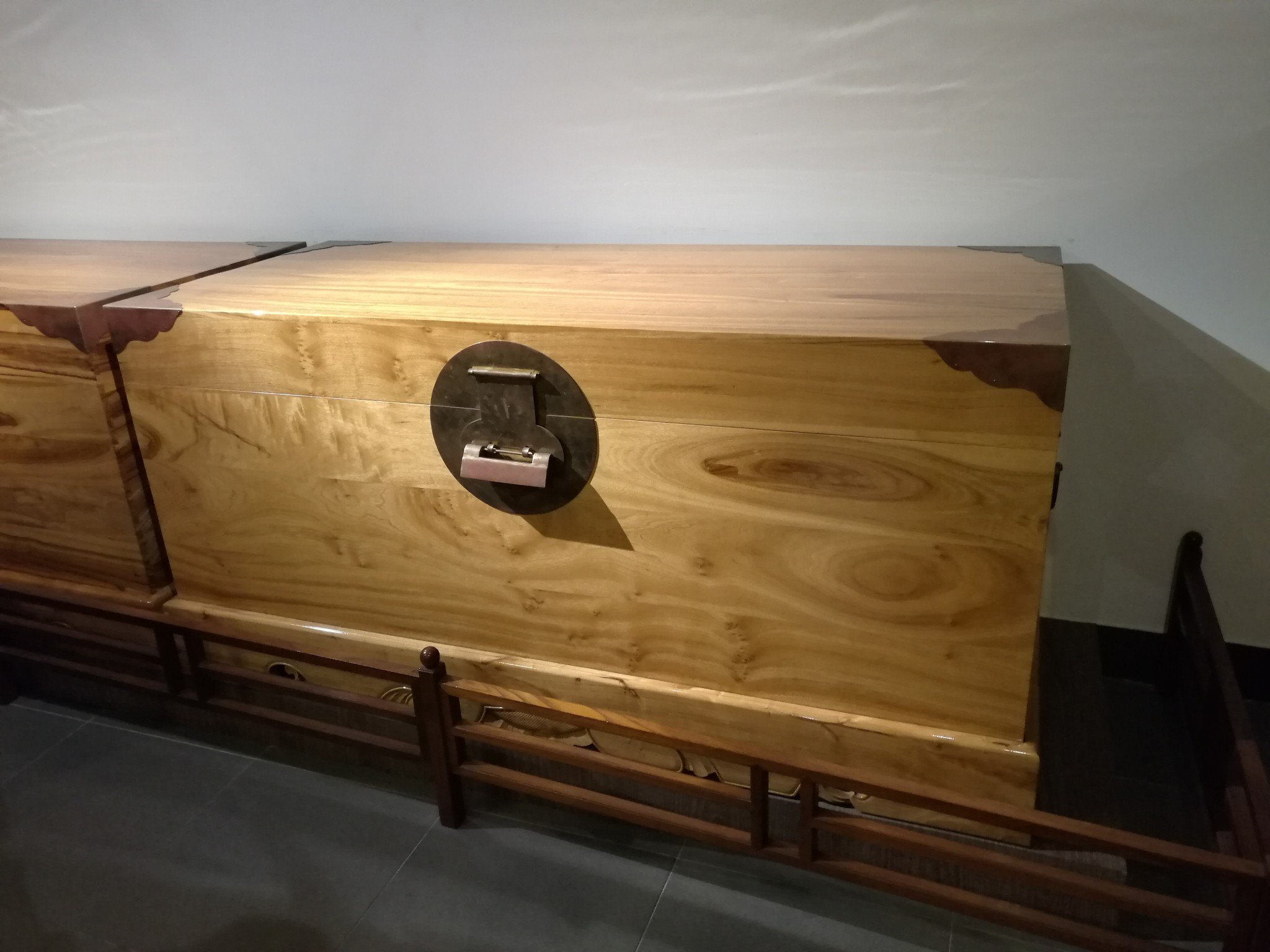 无雕无画的檀香木躺柜,光滑如大理石,温润如玉,如同覆上一层琥珀般的外壳,散发着清幽的淡香。极简而又极奢。
