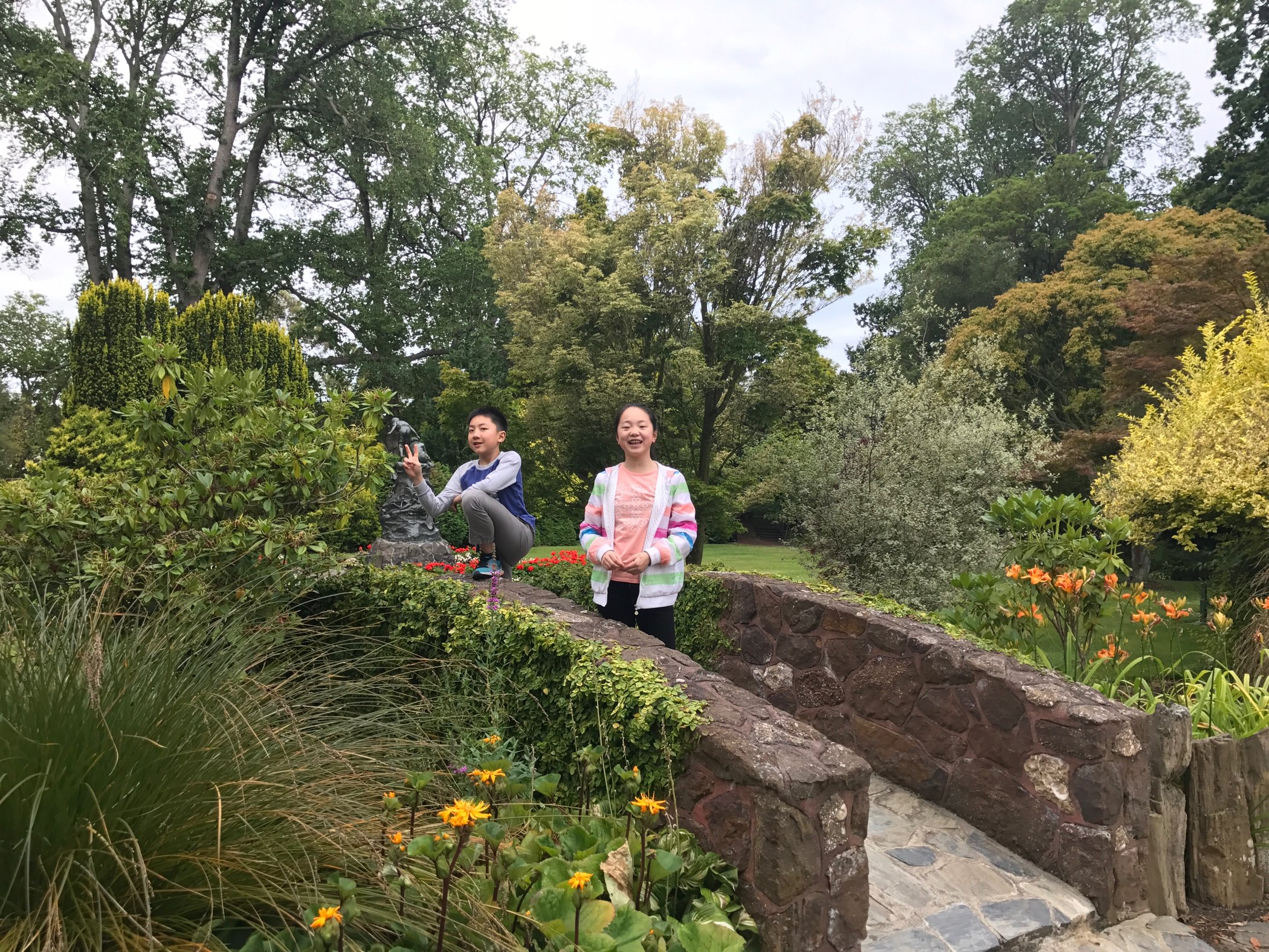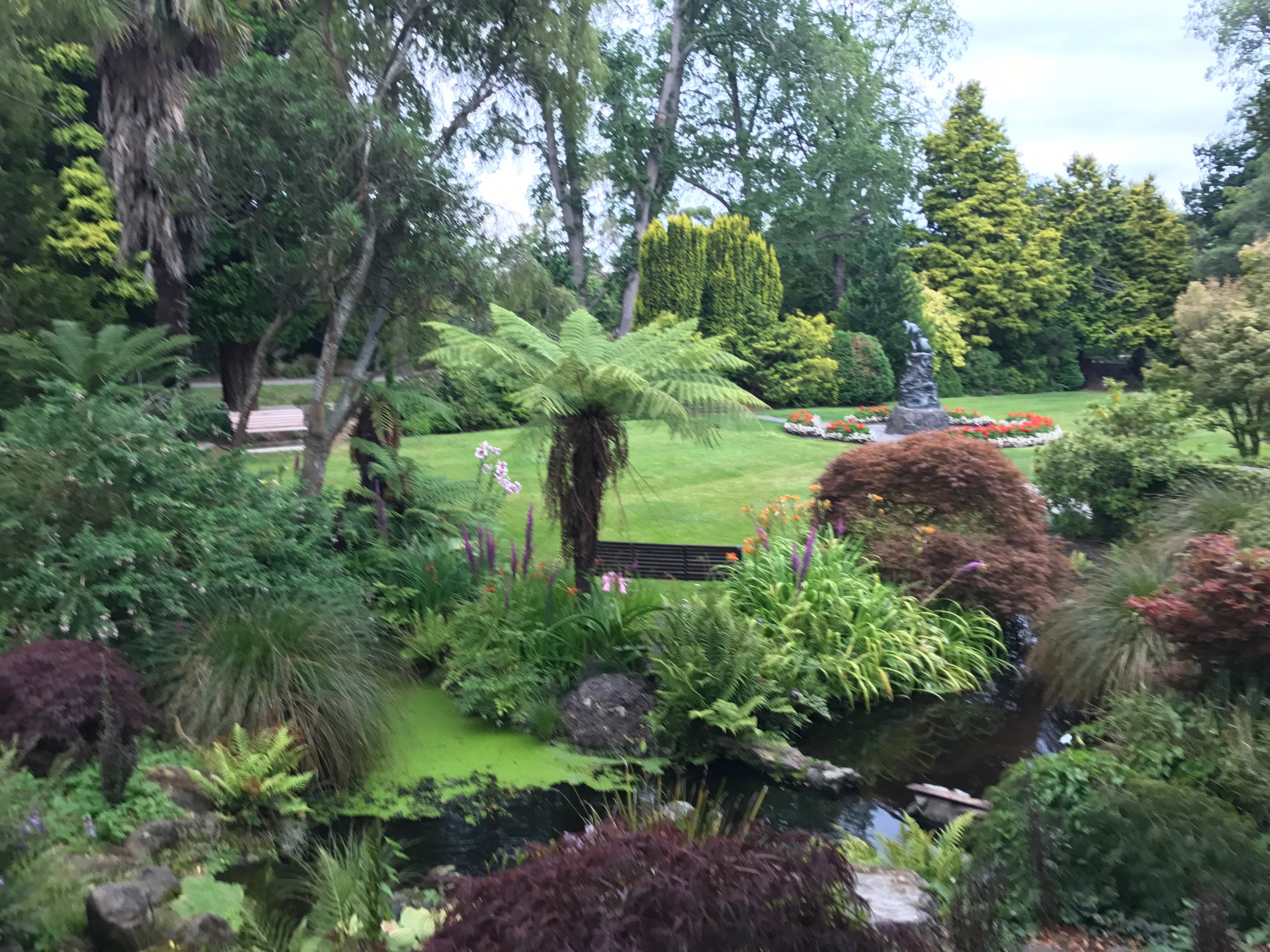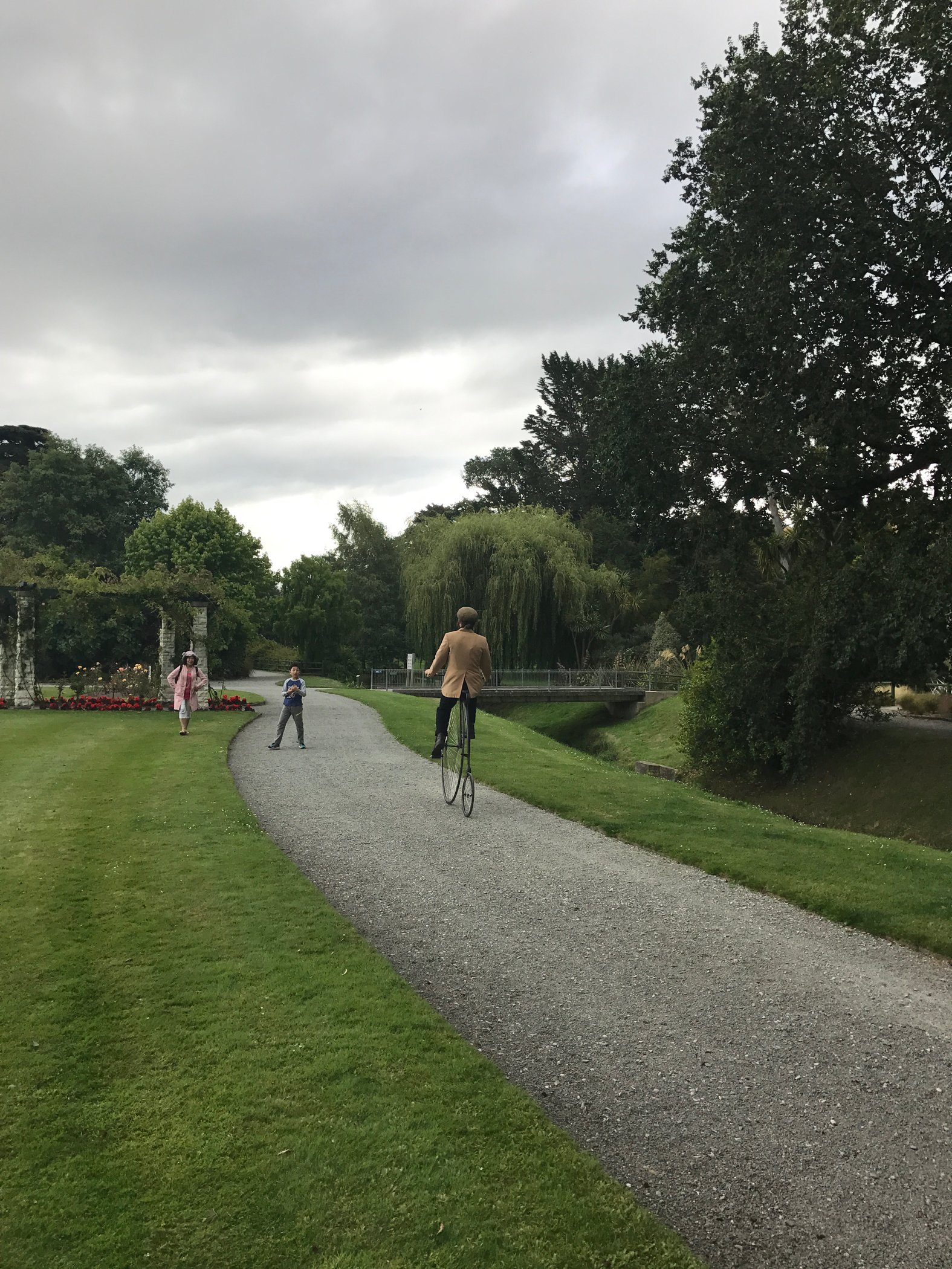 奥马鲁花园(The Oamaru Public Gardens)是当地人的一个休闲场所,这座花园历史悠久,建于1876年,是新西兰最古老的花园,紧挨我们所住的汽车旅馆,从后门就可以直接踏入花园,花园绿草如茵,各种鲜花竞相开放。花园里的游人很少,特别宁静,见到两个当地人骑着具有复古气质的单车从我们身边经过,好像穿越到了维多利亚时代。