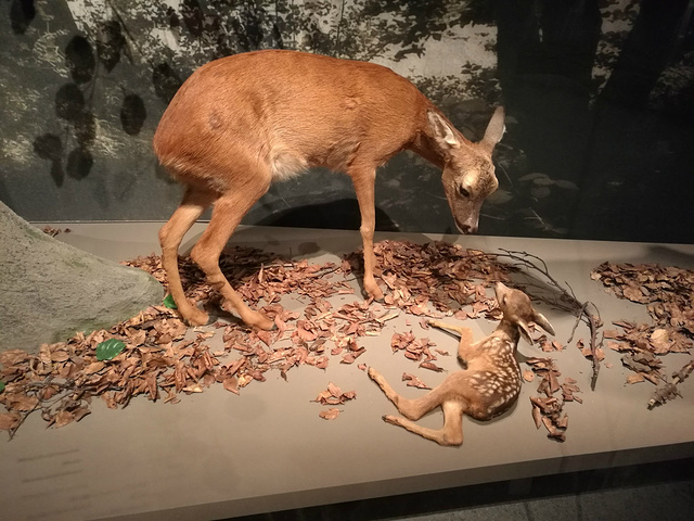 博物馆近百种动物标本的展厅,从萌萌的小鼹鼠,到轻盈可爱的梅花鹿,有五彩斑斓的蝴蝶,也有擅长攀爬的山羊