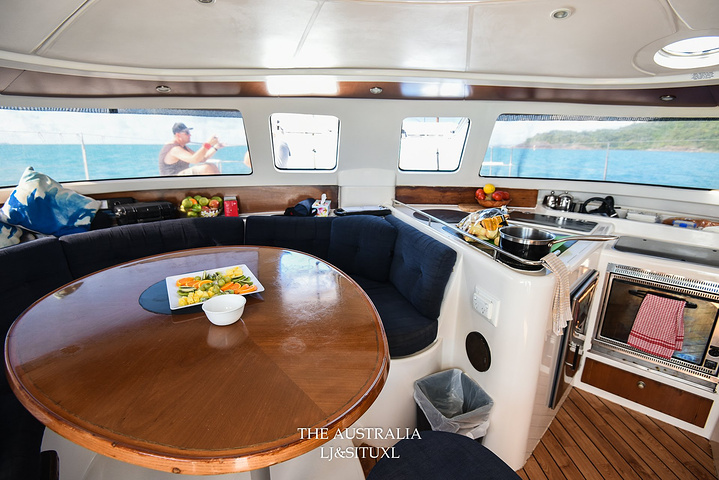 这次重游旧地,我家梁先生说要来点突破,于是,我们选择了号称“大堡礁最奢华的帆船”。此帆船只接待8位客人,且必须是夫妻或情侣,不接受儿童,因为要保证船上客人的安静度假享受。但帆船毕竟就是帆船,再奢华也是帆船,所以,也就那样了,不能跟游艇相比。 而我,已经不想研究帆船是奢华还是简陋,我只知道三年前帆船上的荷兰籍水手非常高大威猛靓仔,且拥有完美人鱼线。于是怀着期待的心情匆匆登船……