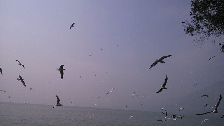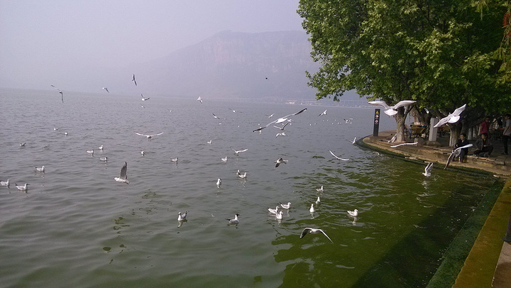 海埂公园不要门票,进门就听见红嘴鸥的叫声,一大片红嘴鸥在滇池上飞。 老婆兴奋极了,拿着手机猛拍