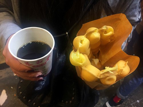 吼吼吼,在香港的每天晚上必吃的鸡蛋仔、牛杂和鱼蛋~~~我发现不管我去香港多少次,吃的都还是这些,因为好吃啊!~就是想吃这些~在买买买和吃吃吃中,这一天就过去了,这样的一天多给力,要是每天都能啥也不想就刷卡和吃,要不要再爽些