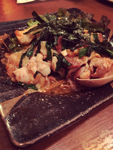 空气潮湿,但不泥泞,晚饭在酒店附近的这家貌似叫“也未上庵”的地方,喝口小酒,吃个肥牛小火锅和烧肉,赞