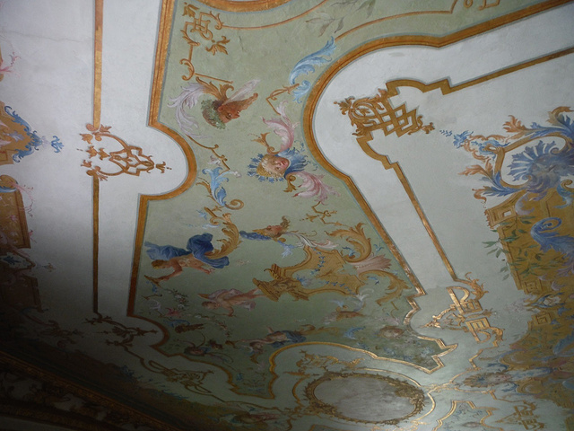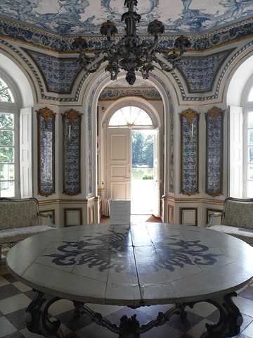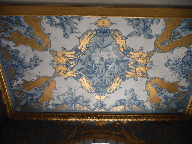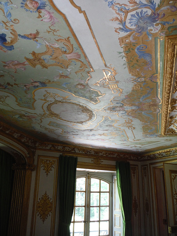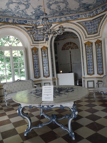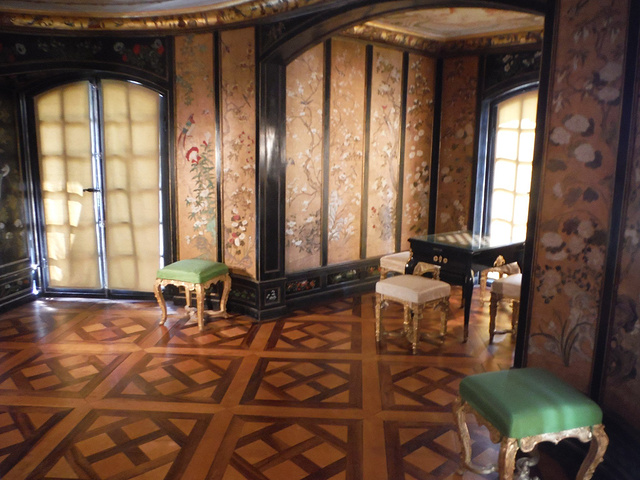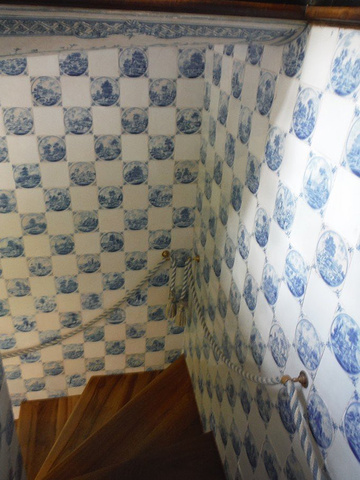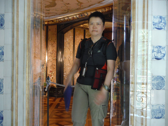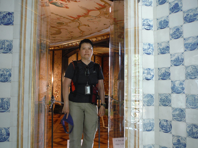 Pagodenburg,這房子的設計看起來很奇怪,不曉得為什麼凹進去?看起來小小的一幢,走進去比預期的稍微大一點。 整個大廳都是以青藍色為主色系好像我們的青花瓷! 2樓兩個房間分別以綠色系及黃色系為主,和走廊跟大廳的青花瓷顏色又完全不同!不懂這是要表達什麼。但是,同樣的也只有我一個人進來參觀!