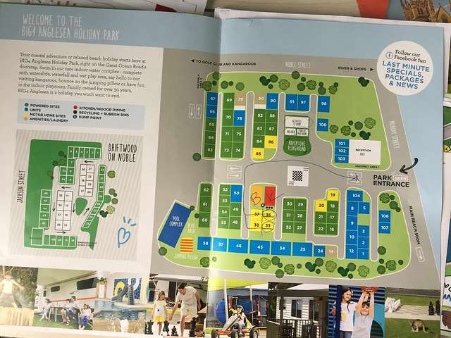 安格西BIG4营地地图,橙色和红色分别是公共厕所和厨房