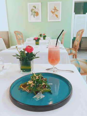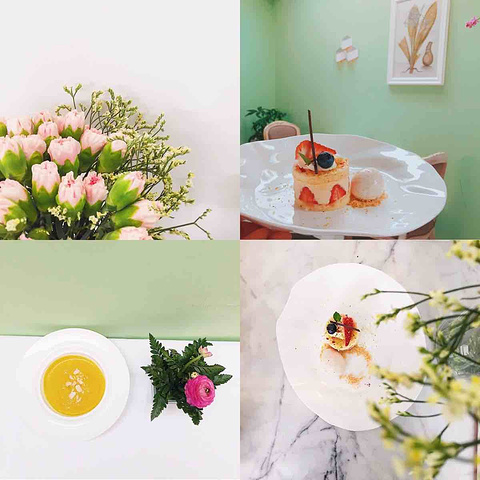 最近吃了几家餐厅周,最爱蝶舍,颜值这么高就算了,每道菜都很好吃,服务也很好。完美! 他家藏在老洋房的弄堂里,青草绿的门店还是会让你一看看到,我称它为“老洋房里的小清新”。 门店的标牌上并没有写蝶舍两个字,而是写的英文,看到好几个人到处问,记得看着英文名字找哦。 一进门更是一眼爱上,满眼的清新绿,与法式优雅的装饰相结合,逼格满满。进来直接上二楼,上午11点半开门,我四十分进去,靠阳台的那一侧已经坐了好几桌,但是外面就完全被我包了场。所以,想要去的话,记得提早预约,好位置才会留给你。 餐厅周的菜单都是固定的,前菜 汤 主菜 甜品,主菜二选一,其他都一样。为了保证食物的口感,服务员会和你确定同伴来的时间来上菜。 每道菜上来,服务员都会介绍名称,原谅我光顾着吃并没有记住。只知道第一道菜上来就惊艳到了我。 满分好评,仙女们记得一定去拔草!