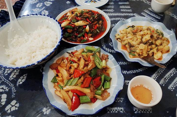 双廊古镇好吃的有一家【古渔香】 地址:双廊小学附近往南40米,蓝影客栈旁 人均:48元 推荐:烤五花肉、老奶洋芋 、黄焖鸡 、银鱼煎蛋 老年痴呆的潘奶奶已经忘记了下面分别是一堆啥......