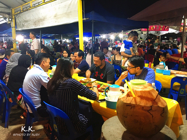新鲜椰子,3RM/个。帅帅的小哥,他给我挑了个头儿最出众的一个,可惜破开是坏的~又换了一个个头差不多大的,继续破开顶上的一个盖子,汁儿很多呀~~找海鲜摊主拿了一根吸管,满满地吸了一口,酸酸甜甜的椰子汁儿,口感吃出来荔枝的味道。顶上的那个椰子壳盖,啃了一口里面的白瓤,清清淡淡的椰子香味。此时,有舔酸奶瓶盖儿即视感。