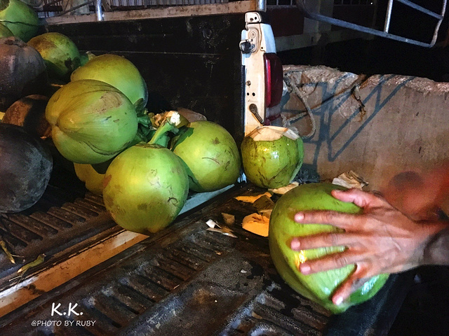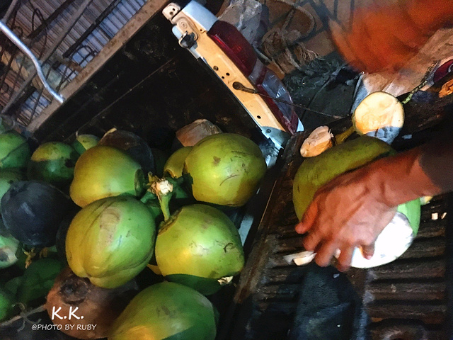 满满地可惜!新鲜椰子,3RM/个。帅帅的小哥,他给我挑了个头儿最出众的一个,可惜破开是坏的