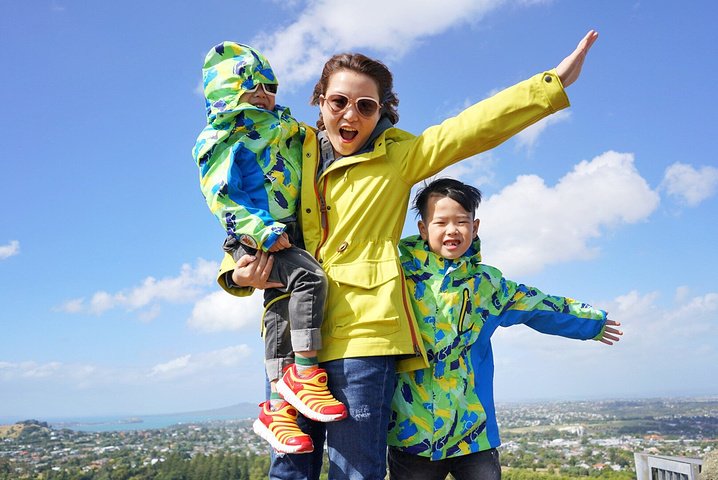 这里的天气预报还是挺准确的,说好的3点开始停雨,我们也差不多在这个点返回了奥克兰。看着还有有些时间,本来我是计划去伊甸山,顺便给孩子们看看这个火山口(由于老大看新西兰寻宝记,知道新西兰有很多火山,并且也把这个告诉了弟弟,他两对火山这件事是特别好奇,感兴趣的)但是Tony 说我们去伊甸山,车子开不上去,他担心弟弟走不了那么多路,经过大家讨论,我们决定去一棵树看看,毕竟这里是除了伊甸山,也可以看到整个奥克兰全景的地方。 我困得这个景点比较一般,但是一家人在一起,不管在哪里,好像总有一些有趣的事情发生。我们刚登到顶上,就发现这里的风真不是大。弟弟说,他感觉到自己站都站不稳了,随时要倒下了。