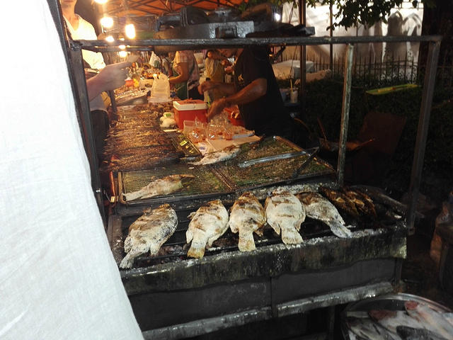 烤海鲜,正烤着的是石斑鱼,一条也才140B的样子,很便宜的有木有?
