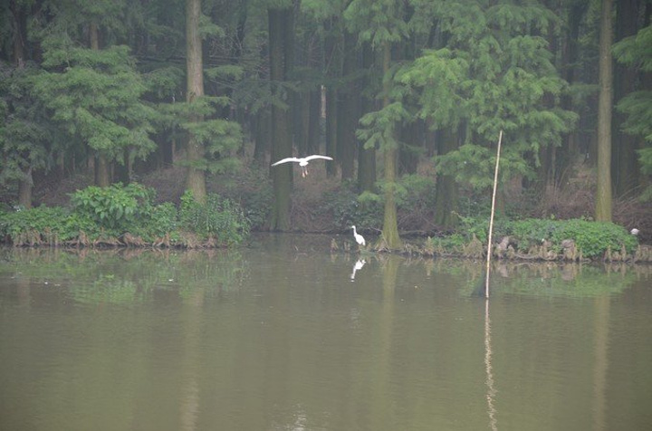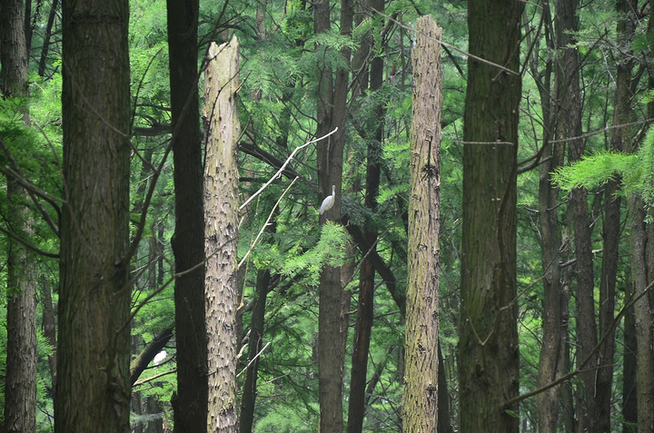 第三天早上,退房,赶路,从酒店到李中水上公园要100公里有余,攻略没做好,实在有些折腾。 到公园门口,没发现啥特别的,只是远望去林子中间有很多鸟。