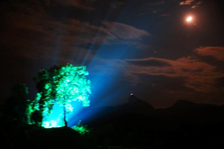 茶摇翠影,渐渐迷离……百名武夷茶农摇起手中的水筛,在灯光的烘衬之下,一片葱茏的绿色摇曳生姿,魔术般的绽放出耀眼的光彩。