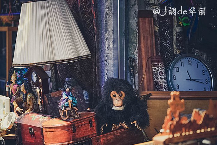 二手店里有各种五花八门的小玩物,从台灯、挂钟、首饰盒、玩偶到各种小模型应有尽有。