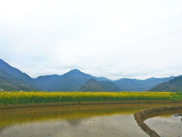 蜿蜒曲折的乡间小路,满山遍野的油菜花,仿佛正在欢迎远方的客人,不禁停车驻足。 远处沙沙的流水声,不刻意去聆听,甚至还没有发现一条绵延的山间小溪从脚下缓缓流过。眺望远山,似云又似雾,与山相互环绕,穿梭其中。