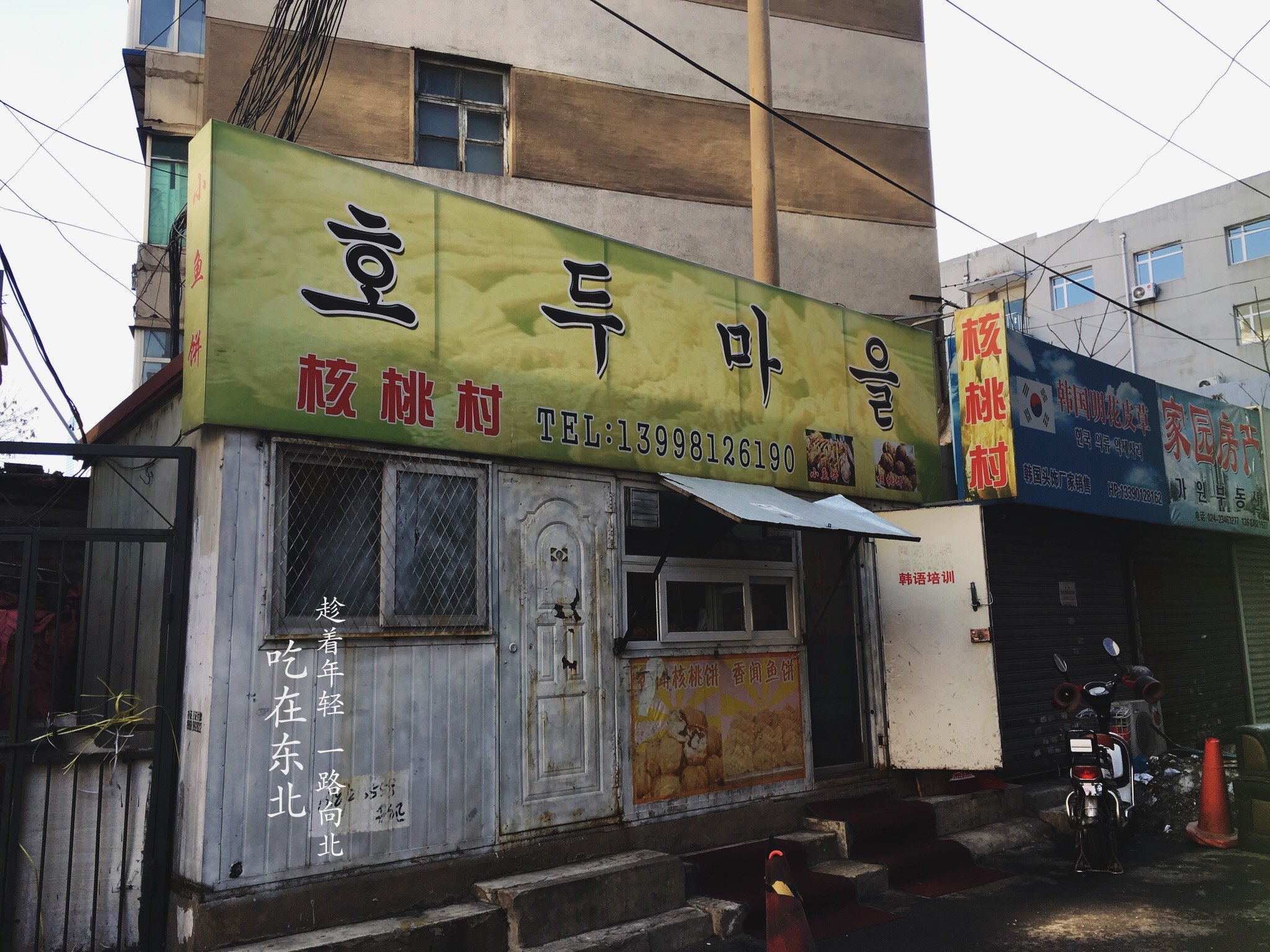 老板是个朝鲜族的大叔,非常热情!核桃饼的馅儿是核桃和红豆沙、芝麻,我更喜欢吃核桃饼,因为加了核桃更香