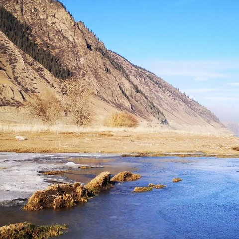 夏天的玉湖很美,但冬天的玉湖也别有一番景致。湖光山色,捕捉人间蒂芙尼蓝。如诗如画,定格美妙心灵瞬间。深冬时,湖面结冰,如一块巨大的蓝色透明翡翠镶嵌在天山廊道,嬉戏追逐,自由自在,拥有震撼灵魂的自然之美!