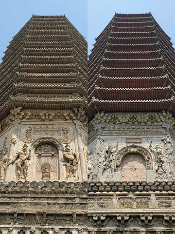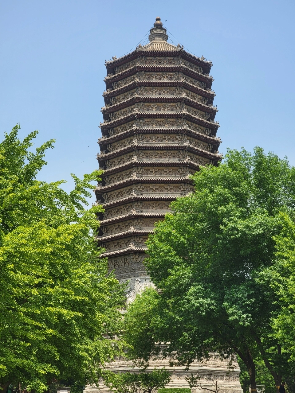 北京Citywalk|一城双塔|最古老与最高仿 |||北方的砖塔,不胜枚举,本南方人表示根本看不完的程度。在北京的市中心,高楼林立中就隐藏着这两座被时间遗忘的古塔。 📍天宁寺塔(P1-P7) 现存北京地表⚠️最古老⚠️建筑,位于北京市西城区。始建于辽天庆九年(1119年),建成年代为辽天庆十年(1120年)。此塔初名大辽燕京天王寺合利塔,建筑师是寇世英,、寇世兴。塔为八角十三层密檐式实心砖塔,塔身高57.8米。明永乐元年 (1403年)明成祖朱棣下令修缮天王寺塔,依辽代原状更换含利塔基座砖雕,塔整体仍保持辽代风格。 历史上曾经记载,春节时皇帝会率领百官到天守寺燃灯供佛,祈求一年风调雨顺、国泰民安。每月初八点燃三百大十盏灯。百姓聚众观灯,祈祷吉样。全塔共悬挂风铃三千四百个,风作时铃齐鸣,仿佛编钟悠远流长。有古诗为证:灯明三百六十点,最好天守云外塔。风撼二千四百铃,恨无梯级上青冥。 📍慈寿寺塔(P2,P8-P13) ⚠️像不像?像就对了 慈寿寺塔,原名永安万寿塔,又名八里庄塔、玲珑宝塔,仿天宁寺塔而建(大明官方仿制)。位于北京市海淀区八里庄街道西八里庄北里3号玲珑公园内。慈寿寺塔因建于慈寿寺内,故俗称慈寿塔,当地人又称玲珑塔。 明万历四年(1576年),始建慈寿寺塔。清乾隆二十二年(1757年),修缮。清光绪年间寺废,只留慈寿寺塔和塔前的两座石碑。慈寿寺塔平面呈八角形,为13层密檐式实心砖塔,通高50米。没有阶梯,不能攀登。 PS:天宁寺塔离慈寿寺塔打车🚕15mins,建议要么不去,要么就都看了,会有很强烈的对比效果。