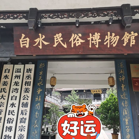 位于龙湾天柱寺风景区边上,据说是当地一-位私人展馆,依山四方厅院,入门就见如画山景,馆内有一位工作人员值守,没有讲解员,馆内安静洁净。馆内展览内容: (一) 当地婚庆礼俗,栩栩如生迷你版迎亲队伍、旧时新年坐大花轿、木做圆木家具、衣柜、屏风床、餐桌等等再现。(二)年代感当地农耕农具,有丰收稻谷脱机、耕田的木犁、水木轮等等。(三) 、,一 年中清明、端午时节习俗。(四)、女儿活织布机、绣活等,(五)、罗列当地史上官吏成就史,人后人励志榜样。 按导航可以易找,边上可以临时免费停车。