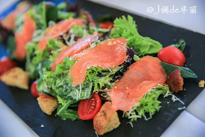 这家餐厅是以吃鱼类为主的,特色的烟熏三文鱼沙拉味道灰常不错。