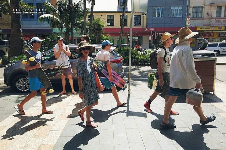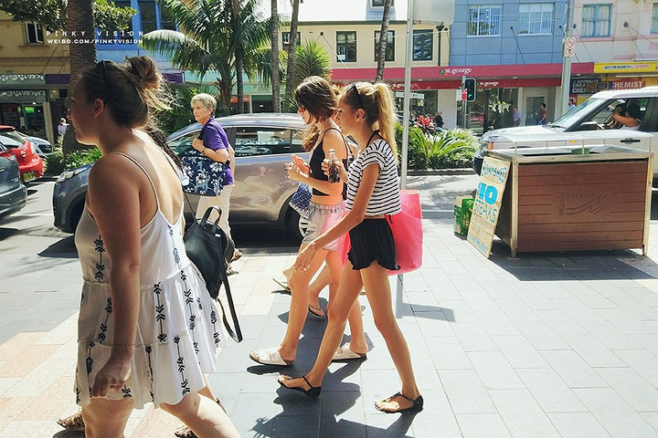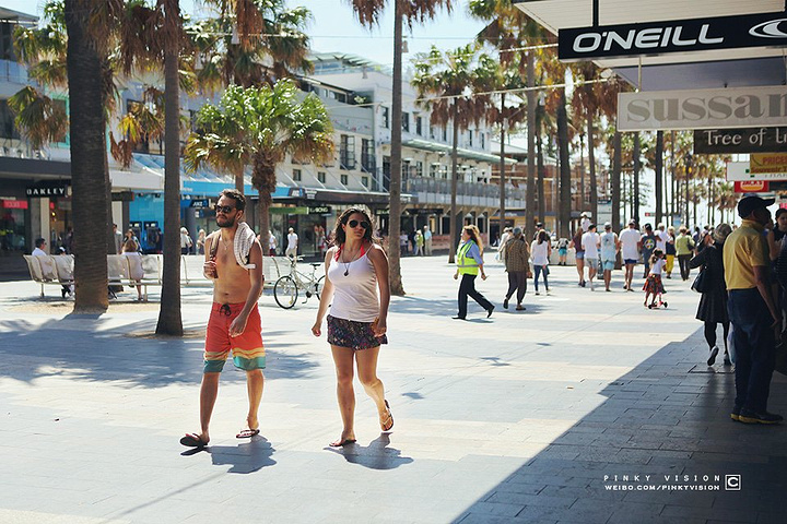 到啦,Manly Wharf,码头出来之后往海滩走的两旁是各种商店和餐厅,据说Manly是悉尼人最喜欢去的地方,而Bondi Beach才是游客去的。这里很少看到游客,因为到处都是简便装束过来的,只带着游泳或者冲浪的东西,游客呢就是像我这样的,背着大包,拿着相机,典型的游客。