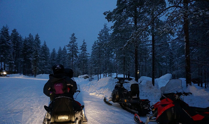 作为一个正经的女汉子!怎么能错过这么过瘾的雪地摩托!! 在一片纯净的白色森林里面驰骋,简直太酷了! 一大早,天还没亮我们就来到了圣诞老人村wild nordic的大本营,他们已经为我们准备了防寒服,防寒靴子,头罩,手套,袜子等等等等,穿戴整齐之后就跟要上太空似的~~ 我们的教练是个特别酷的芬兰大叔~ 摩托车很容易学,在注意安全的同时,飚起来吧!!