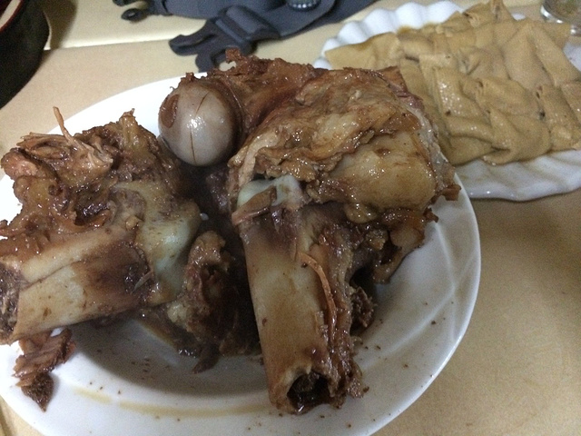 然后就来到了这家富强大棒骨。很小的一家店,但是大棒骨真好吃~ 一盘大棒骨三块,有肥、有瘦还有筋。肥肉不腻,筋炖得够烂,老汤味道很香,还有骨髓也很好吃,瘦肉的味道相比之下要逊色不少了。 不过需要注意的是,他们家大棒骨不单卖,至少还要点3个菜,所以单身狗们请组团前往。单身猪们也许就没有这样的顾虑了~~哈哈哈~