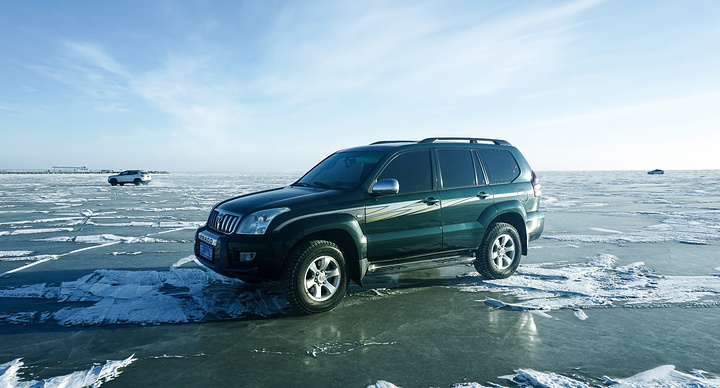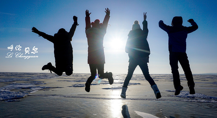 冒着凛冽的寒风,跳了无数次的结果,想想就冷!结冰的呼伦贝尔湖,湖冰很厚很蓝,湖上的风很大