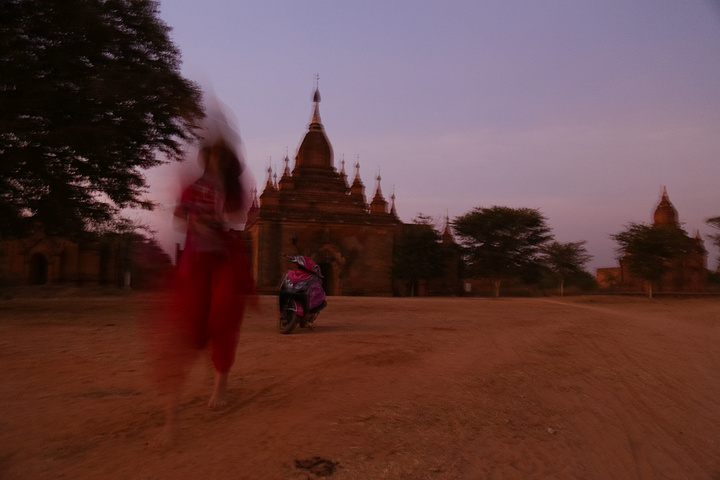 Bulethi看日落的人不少,我身边坐着一个韩国来的妹子,她不说话我都以为是当地人,穿着特敏涂着特纳卡,长得也挺像,她说她昨天才到缅甸,我表示她的伪装非常成功。 Bulethi的日落风景一般,不过能跟这么多人坐在一起,静静地享受一场日落的时光,突然觉得也是很美好的事。 看完日落后下来,碰到一位马车夫跟我们说新年好,忽然发现,除夕就快到了。
